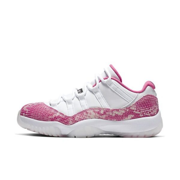Nike Air Jordan 11 Retro Low “Pink Snakeskin” AH7860-106 is a classic sneaker that has made its mark in the footwear industry. With a polished leather upper, it delivers a fashionable edge to any outfit. The high-cut silhouette provides exceptional support, while the Air-Sole technology guarantees superior cushioning for all-day wear. Additionally, the see-through rubber outsole contributes to both traction and durability, ensuring these sneakers are not merely a stylish choice, but also a celebrated piece of basketball heritage associated with the legendary Michael Jordan.