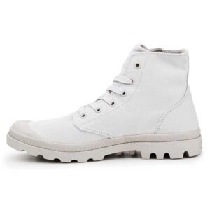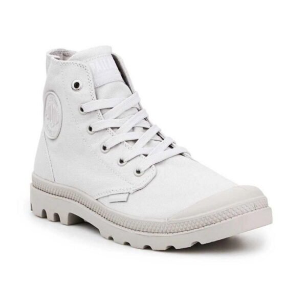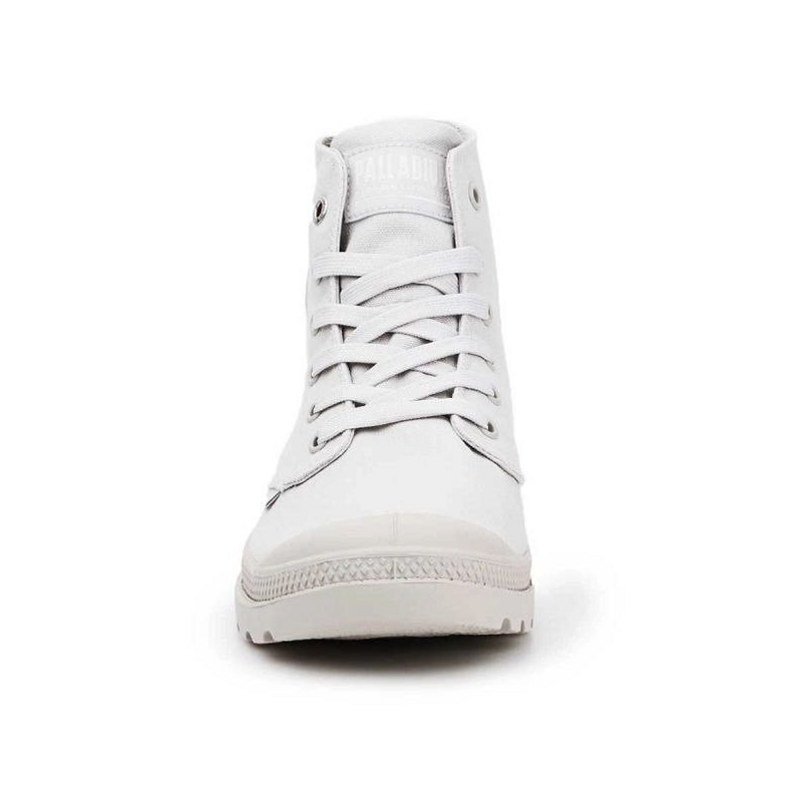 The Palladium Pampa HI Mono U Moonstruck 73089-055 shoes feature a high lace-up upper and a reinforced round toe. Made from synthetic material, they ensure comfort and convenience for everyday wear. The textile insole and tough sole made from high-quality material guarantee good grip thanks to the solid tread design. The Palladium logo is displayed on the side, giving the shoes a distinctive look.