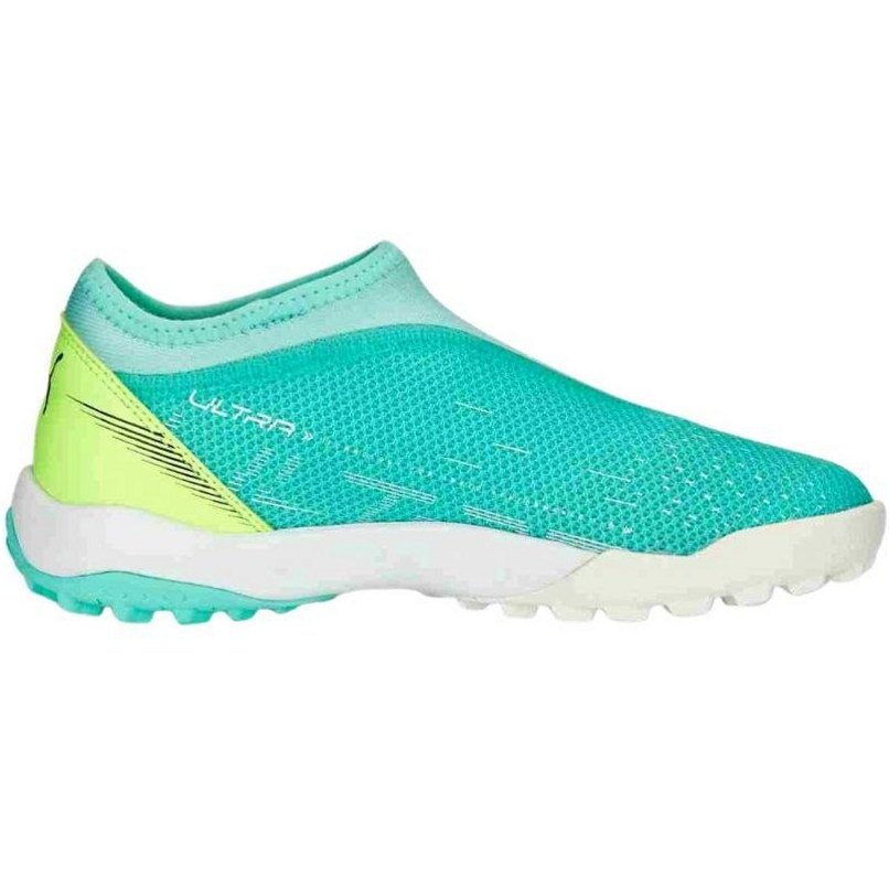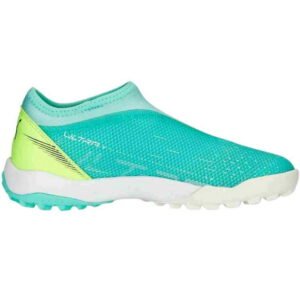 Puma Ultra Match LL + MID TT Junior football shoes are crafted for young athletes aiming to enhance their game. With a lightweight mesh upper and a knitted collar, these shoes provide remarkable stability and ball feel during matches. The innovative laceless design paired with GripControl coating maximises ball handling, while the adaptable rubber studs ensure vital acceleration on artificial surfaces. These shoes belong to the Puma Ultra series from the distinguished Persuit Pack collection and come in a variety of youth sizes.