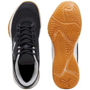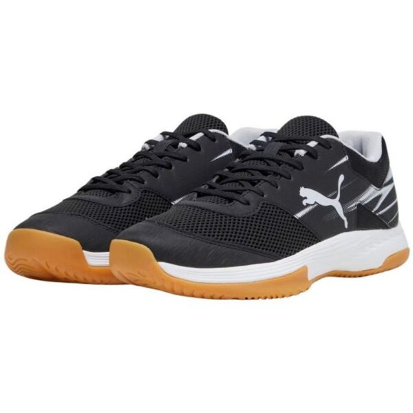 The Puma Varion II M 107341 01 footwear is expertly crafted for those with an active lifestyle, making them ideal for various indoor sports activities. The combination of textile and synthetic materials ensures excellent breathability, courtesy of the Variomesh technology. For added stability, supportive inserts are positioned on both sides, while traditional laces facilitate easy adjustment for a snug fit. The SoftFoam insole not only enhances comfort but also provides antibacterial properties, ensuring proper anatomical foot positioning, paired with a Variofoam midsole and durable rubber outsole.