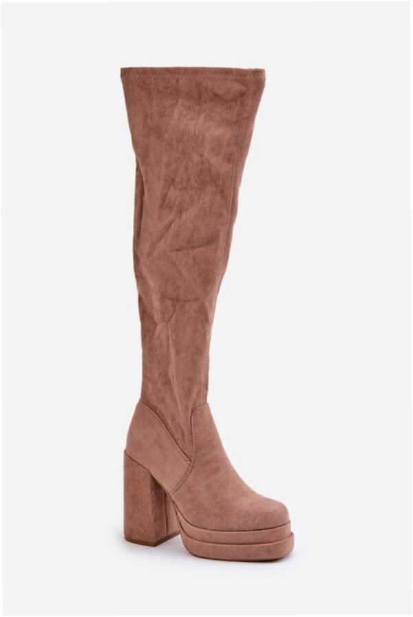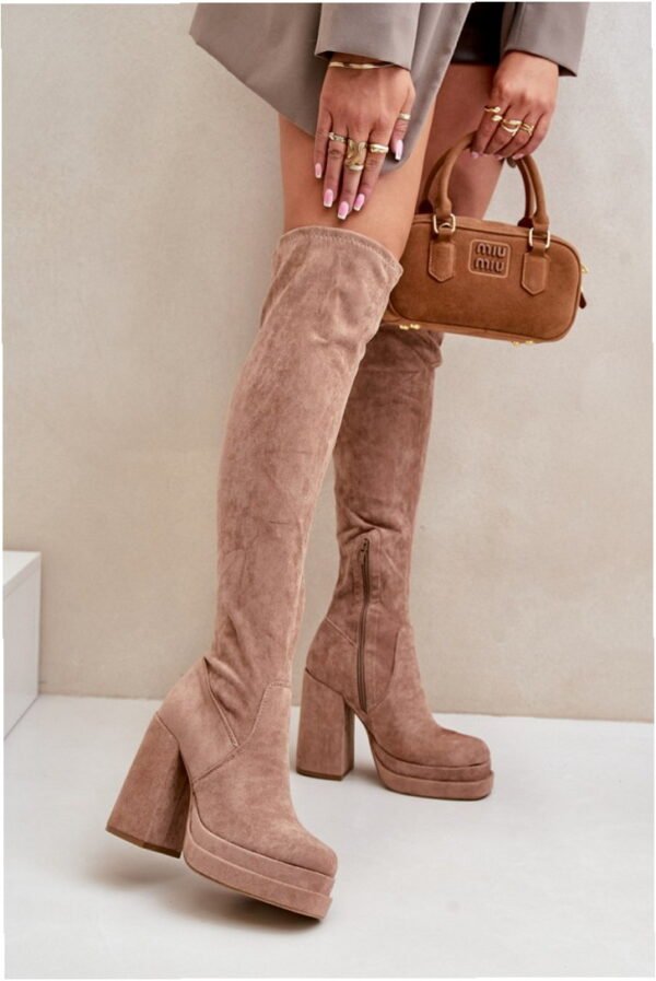 The Nadelian 8669 knee-high boots in beige offer a chic option for women seeking both comfort and elegance during the cooler months. Crafted from eco-friendly suede, these boots present a sleek silhouette that adds sophistication whilst flattering your figure. Designed with a convenient side zip for effortless wear, they feature a chunky heel paired with a platform to ensure added stability. The interior is lined solely at the foot level, making them an ideal choice for pairing with dresses or skirts. Available in sizes 36 to 41, they effortlessly combine versatility with fashion.