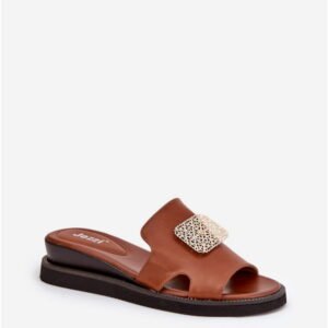 Women’s sandals by Jezzi, model Sarela RMR2267-9, made from eco leather, are the perfect combination of style and comfort. The golden decoration at the front adds elegance and subtle charm. Set on a wedge heel, these sandals ensure comfort and stability when walking. The soft insole provides all-day comfort, and their lightweight design makes them ideal for summer days, suitable for both casual outfits and more elegant occasions.