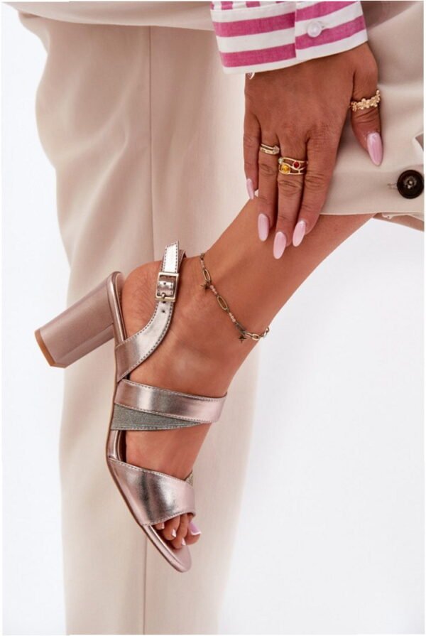 These women’s sandals, made from eco leather, present an elegant choice for special occasions. Set on a block heel, they ensure stability and comfort throughout the day. The model features an adjustable strap closure for a perfect fit. The soft leather insole guarantees comfort. Their classic design makes these sandals an excellent choice for various events, merging elegance with functionality.