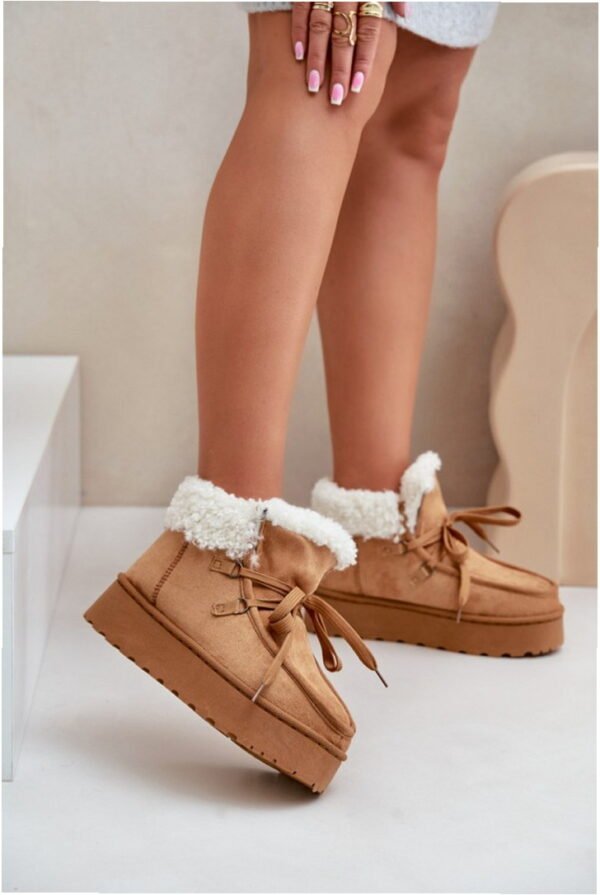 These women’s snow boots are made from eco-suede, combining style and functionality for winter days. Set on a comfortable platform of 3.5 cm, they provide cushioning and insulation from the cold ground. The front lacing allows for a perfect fit around the leg, while the soft fur lining ensures warmth. These stylish boots are suitable for everyday outings and winter walks, blending fashion with comfort effortlessly.