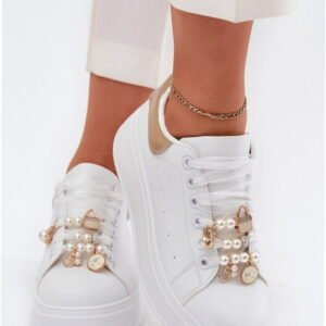 Discover women’s sneakers expertly crafted from eco-friendly leather, perfect for enhancing casual looks with a chic platform design. These sneakers feature decorative laces adorned with charming accents, adding a touch of style to any outfit. Designed for all-day wear, they provide exceptional comfort paired with a modern aesthetic. The fabric insole ensures a cozy fit, while the shaft height is a practical 7.5 cm and the platform stands at 3.5 cm. Available in versatile sizes 37, 38, and 39, these sneakers are ideal for everyday wear.